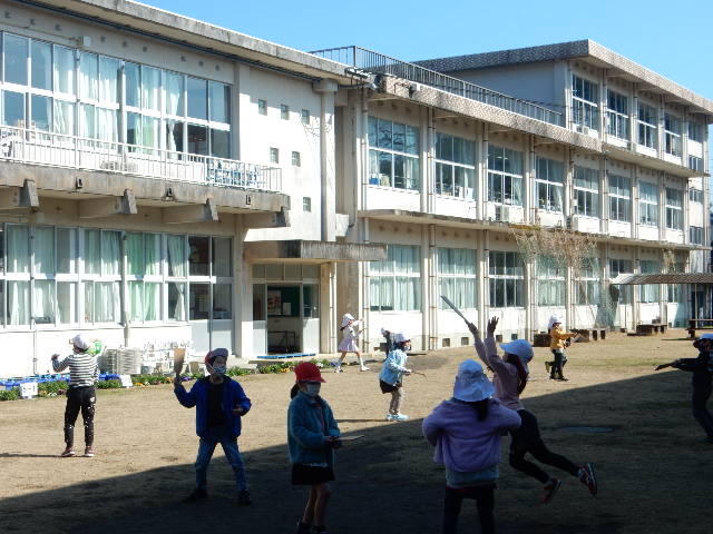 1年生が、「寒ーい」と言いながら、外に出ました。