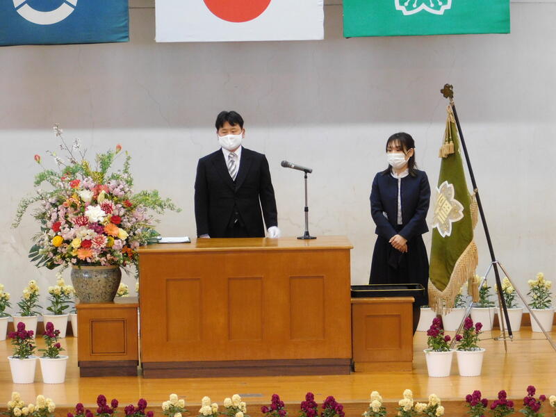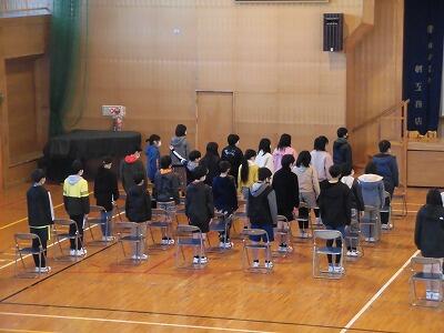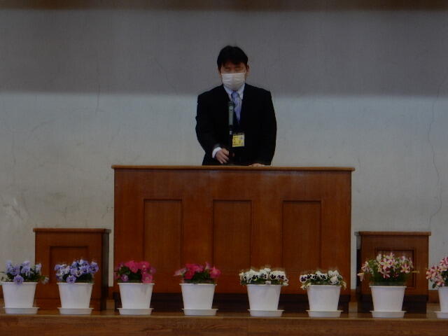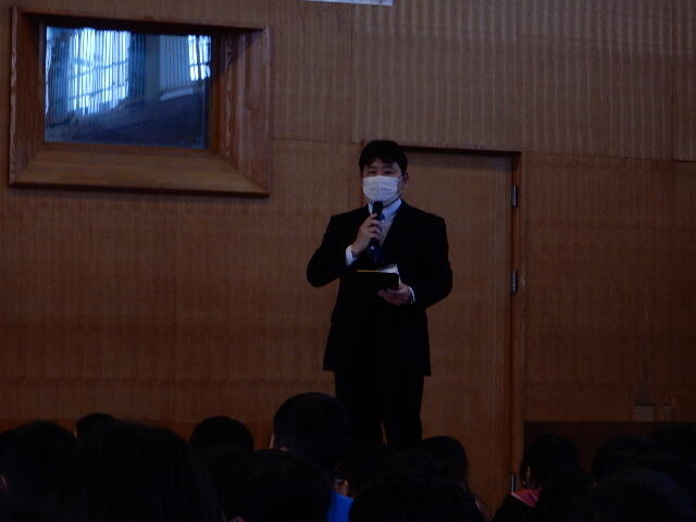 校長先生から、大きな事故やケガなく始業式を行えたことを嬉しく思いますとお話がありました。3学期は短く、新しい学年になる重要なつなぎの学期ですので、1日1日を大事に、また、自分の命を大切に過ごしてほしいとお話されました。