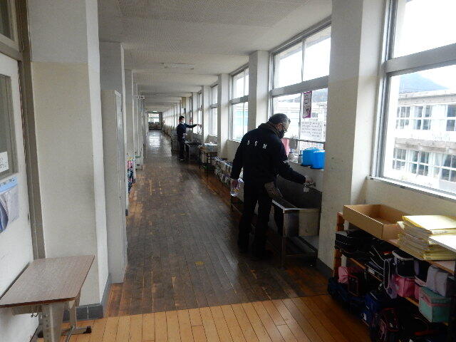 保健給食委員会は、手洗い場の掃除や消毒液の補充をしています。