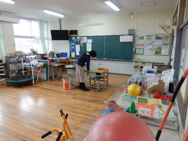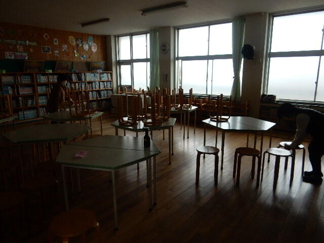 「ここは何という部屋かな-」「大きい机がたくさんあるな-」