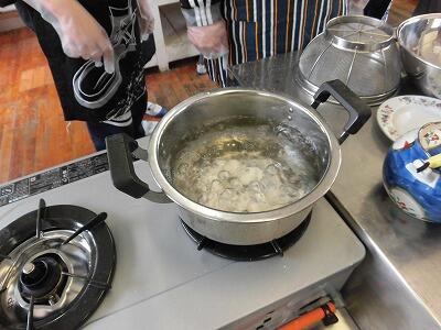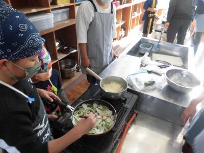 火の通りがよくなるためには、どの様に切るのか、どうやって皮をむけば良いか、炒める順番などをグループで確認しながら、調理します。