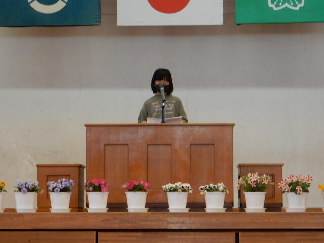 代表児童から、作文発表がありましたね。とても立派な3学期の目標でした。