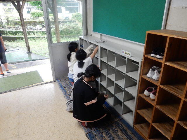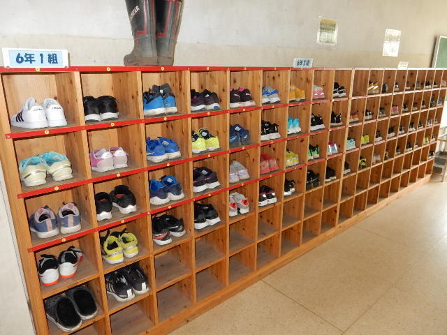 さらに近くの靴箱が目に入るとそこには、整然と並ぶ6年生の靴が・・・。何と見事な靴の並べ方!最上級生としての自覚を高めたい先生方の思いに、子ども達が響いた場面であると思います。