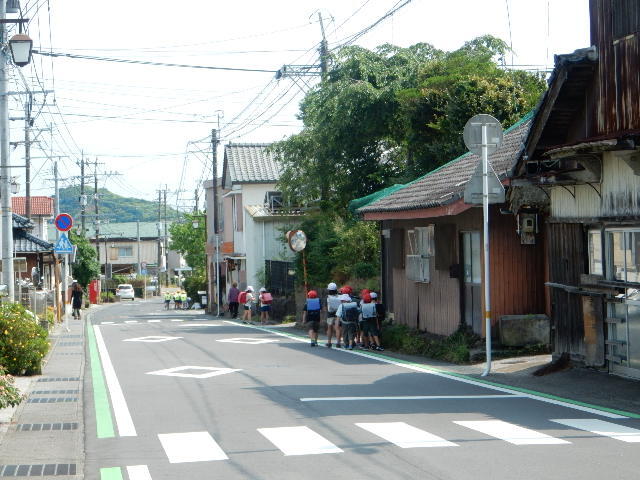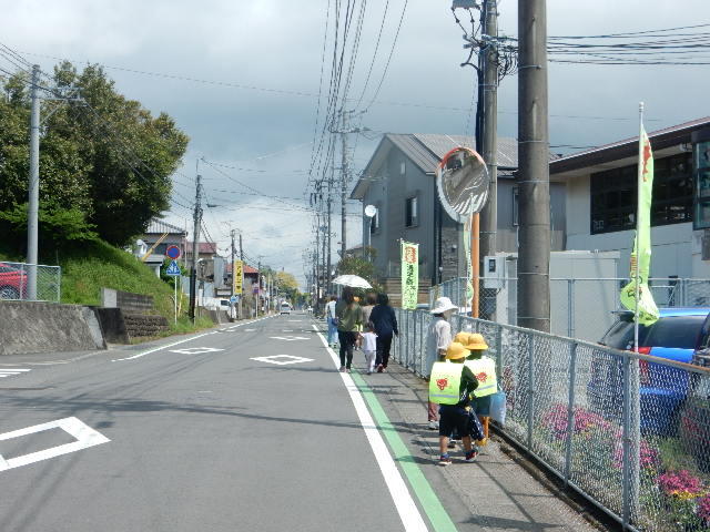 低学年の子どもの下校時間、記念館前付近は、学童(児童クラブ)のお迎えを待つたくさんの子ども達で毎日あふれています。したがって、お迎えが来ると学校前の道路も混雑し、通行車両も少なくないので、登下校担当の先生は安全の見守り活動に、毎日欠かさず取り組んでいます。また、この担当の先生は下校時間だけでなく、正門前で毎朝、登校してくる子ども達の安全指導にも取り組まれています。暑い日も寒い日も雨の日も風の日も、毎日欠かさず、本当にいつもご苦労様です。