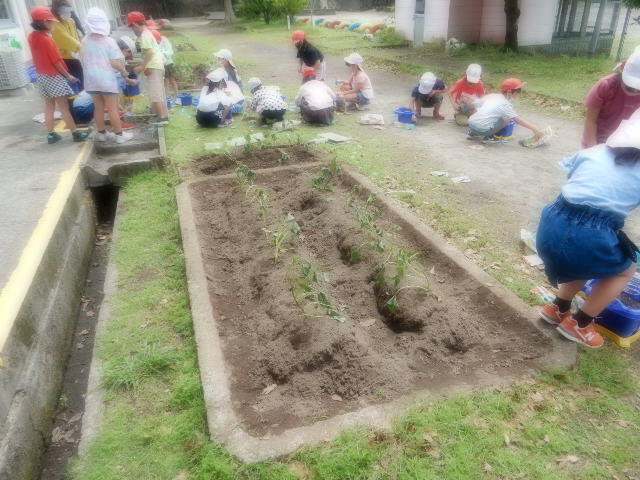 今日も暑い日です。たんぽぽ学級の外には、ピーマンやナス、トマトなどが植えてあります。根元の辺りにていねいにお水をあげている子どもの優しい気持ちにふれました。