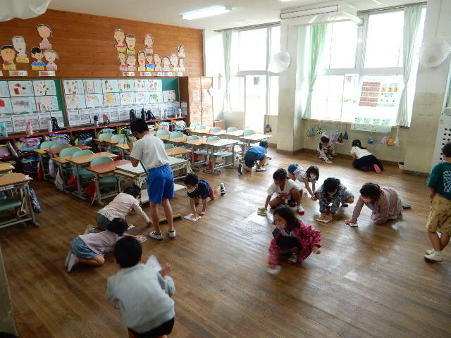 先生の合図で、一斉に探しに出かけました。何を探しに行ったのでしょうか。