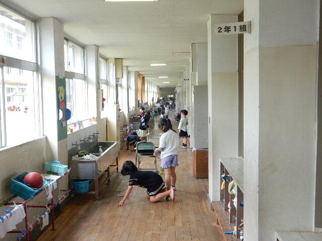 福小ルールでは、当番の皆さんは、職員室前で必ず一度立ち止まって、みんながそろっていることを確かめてから、教室へ移動しています。