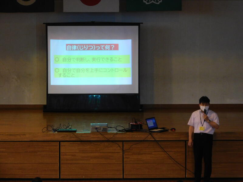 〇 生徒指導の係の先生からのお話。6月に入って、改めてみなさんで気を付けなければならないことを確かめました。