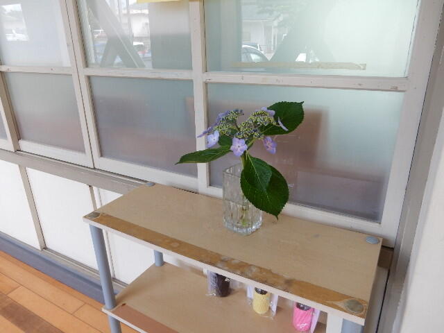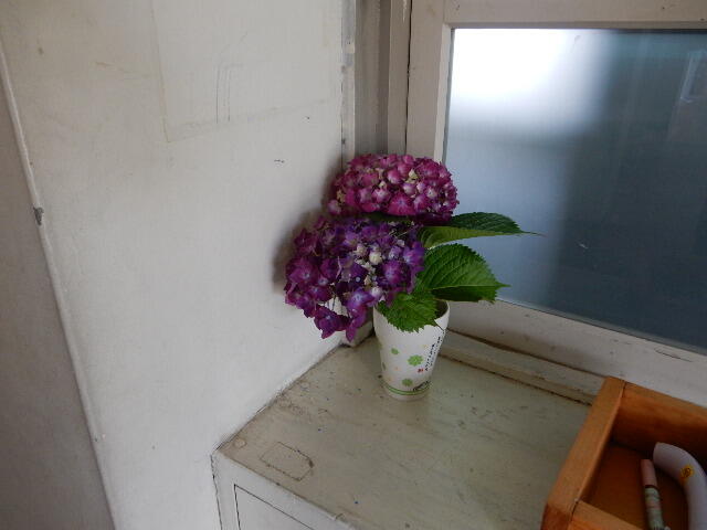 校舎内にも本校の先生からいただいたきれいなアジサイの花が彩りを与えています。