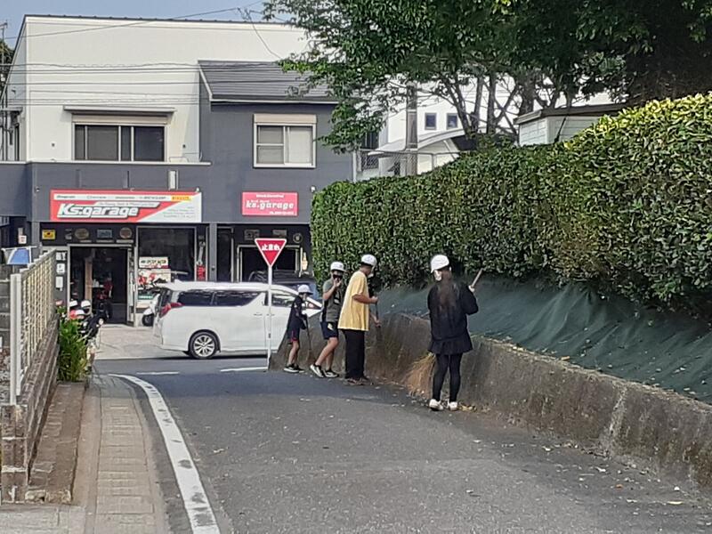 まずは、朝のボランティア。福小の伝統です。この日は、学校前の道路にも活動の場を広げ、落ち葉を丁寧に掃いてくれました。