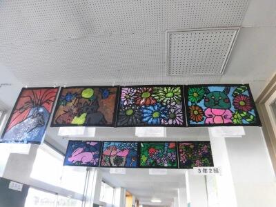 ろう下を歩いていたら、とってもすてきな作品を見つけて思わず立ち止まりました。3年生の教室前です。