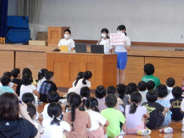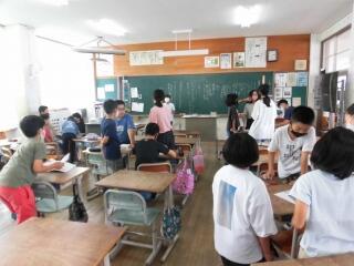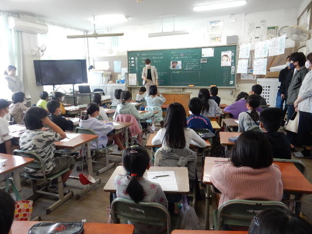 宮崎大学の先生も授業の様子を真剣に撮影してくださっていました。児童は、グループで話したことを発表し、それぞれの意見を聞いてさらに理解を深めたようでした