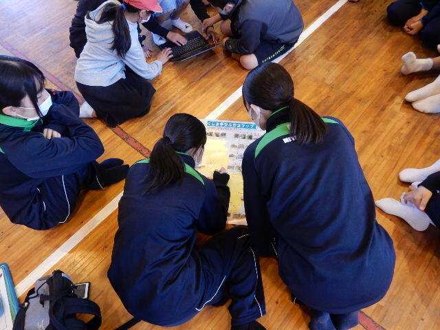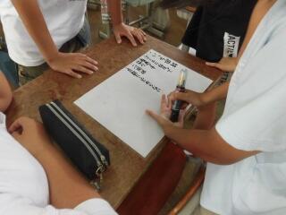グループごとに、調べたことや、話し合ったことを記入しているようです...
