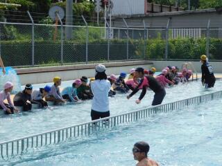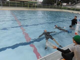 この日は、1年生と5年生の着衣泳の授業をしていただきました。