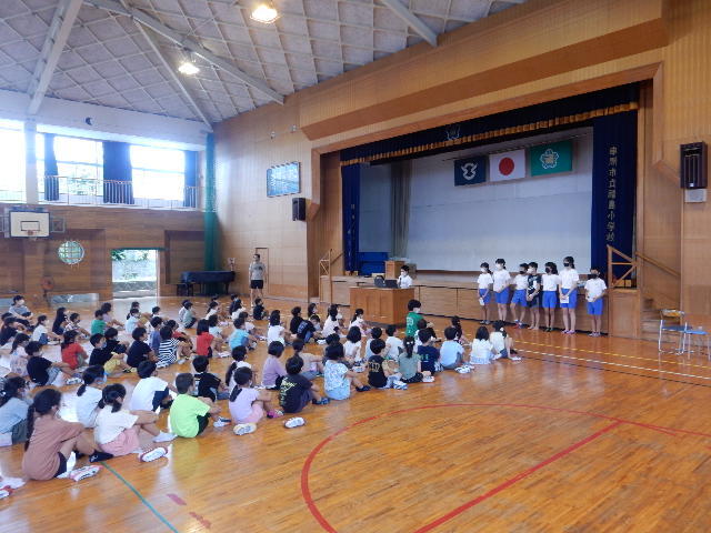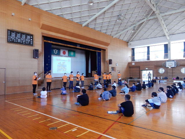 新型コロナウイルス感染防止対策のため、ずっと延期になっていた交通少年団の結団式が行われました。