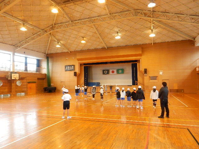 体育館で体育を一緒にしました。子ども達が中心となった活動が進められていました。