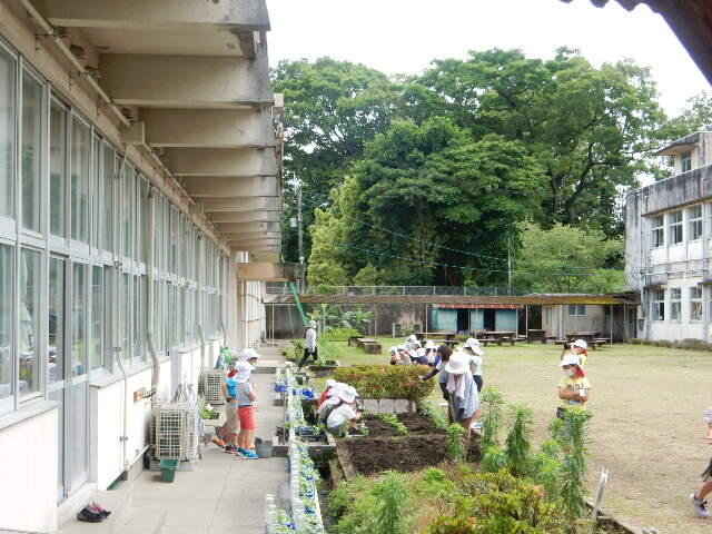 今日で5月が終わり、早いものです。薄曇りで湿度が高いので、もうそろそろ梅雨入りなのかなぁと感じます。今週は「花植え週間」で、学級園の手入れが進んでいる福島小です。午前中、1年生の花壇には、子ども達や先生たちできれいに花が植えられていました。これから雨が多くなり、植物も潤う季節になります。ちょっと疲れた時に心が和む、そんな花壇が整う1週間です。