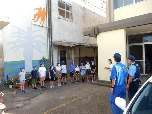 昨日から秋の全国交通安全運動期間中です。この期間に合わせて、今日の夕方、本校伝統の「福島小交通少年団」が串間警察署のご協力をいただき、市内啓発活動を行いました。本年度の団員11名の子ども達が3台のパトロールカーに分乗して、市内を巡回、車内から啓発のアナウンスに挑戦しました。