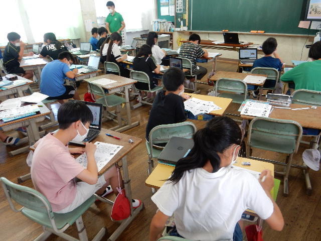 その頃、教室では?と思って覗いてみると、テストが終わった子ども、テストを待つ子どもそれぞれの課題に取り組んでいました。学びの空気に包まれた教室でした。