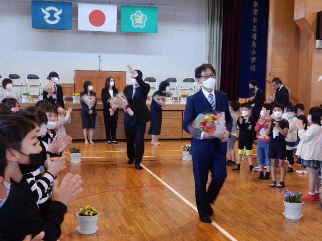この度の異動で、11名の先生方が福島小を去られることとなり、その内、9名の先生方と子ども達とのお別れの式を行いました。