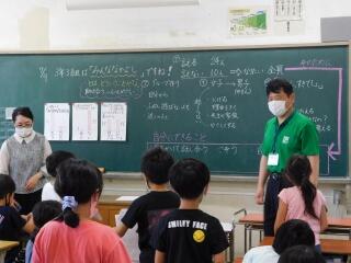 「みんなとなかよく 自分のよさ 人のよさ」を題材とし、同じクラスの仲間として互いのよさを考え、自他の自信を高め、男女問わず自ら進んで関わっていこうという、ねらいのもと行われました。