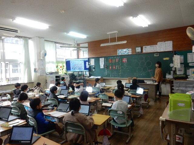 今日は2日目です。1年生の教室では算数の時間。「10の束で考えると?」担任の先生は子ども達に丁寧に問いかけていました。学習内容もずいぶん進んできていることを実感しました。
