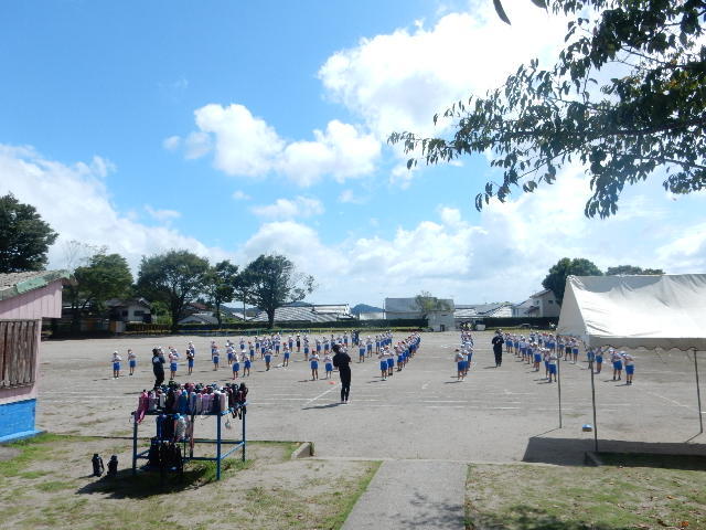 台風12号はまだ遠く沖縄県石垣島付近を北上中のようですが、今日の串間市内は、厚い雲に覆われたり、小雨が降ったり・・・。遠くにはあるものの天気は、確実に台風の影響を受けているようです。そんな中、5校時には、写真のように太陽が姿をのぞかせた福小の運動場。2年生が、表現練習に取り組んでいました。先生たちも子ども達と一緒に一生懸命、動きを確かめていました。