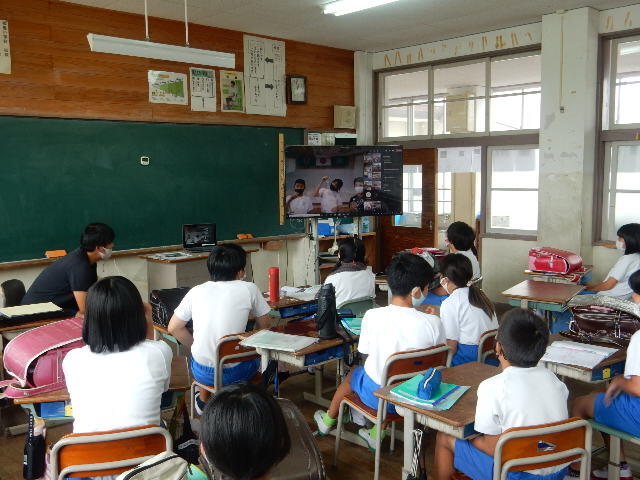 【3年生以上の各教室は大型ディスプレイを通して視聴】