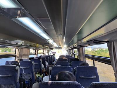 これから鹿児島市内へ向けて海岸沿いをバス移動します。