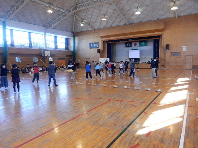3年生が、総合的な学習の時間「くしま学」で、市内本城地区から講師の方を3名お招きし、串間市内の伝統芸能について学びました。講師の方から、都井や市木の火祭り、金谷の盆踊りなど、市内各地に伝わる伝統芸能についてくわしく教えていただきました。その後、棒踊りを実際に体験しました。