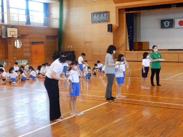 9月29日までの期間、養護教諭の教育実習生が保健室を中心に、本校で様々な実習をします。今日はその初日。3校時は体育館で、3年生が身体計測と視力検査を行っていましたが、さっそく、子ども達の計測に取り組んでいました。ちなみに、実習生は、本校の卒業生だそうです。未来の保健室の先生、15日間の実習が充実した日々となるよう関係する職員でしっかりサポートします。健康に気を付けて、頑張ってくださいね!