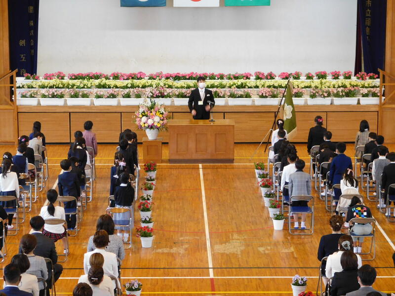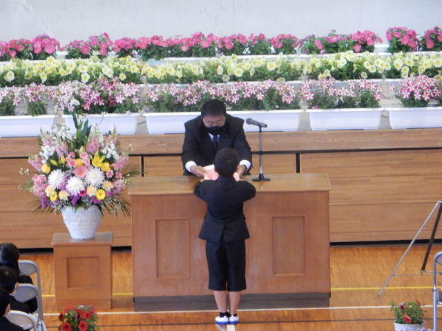 今日は、本校の入学式でした。式開始前には雨も上がり、新型コロナ対策のもとに短縮して式を行いました。