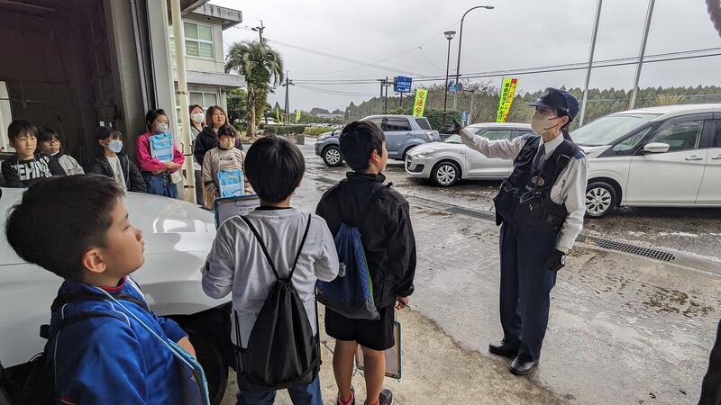 昨日、3年生は社会科見学の一環として串間警察署を訪問しました。警察署では、3つのグループに分かれて警察の方々からお話を伺い、警棒を実際に触らせていただいたり、パトカーに乗せてもらったりと、貴重な体験をさせていただきました。