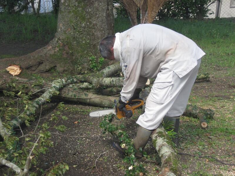 運動場にそびえたつたくさんの樹木のうち、一本の大木の枝が折れてしまったものがあったのです。