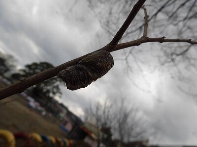 「カマキリのたまご」だそうです。カマキリは、夏に成虫になり、秋にたくさん食べた後、たまごを産むそうです。春を待っているんですね。