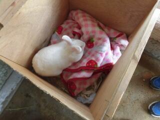 うさぎの「ゆきちゃん」と「しじみ」は避難中です。