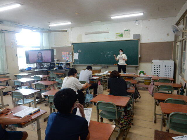 本校では、外国語活動や英語の指導を主として行う外部の指導者と学級担任が、