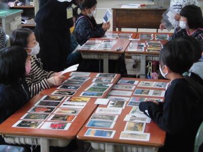 形や色、言葉のカードから、そのイメージに合ったアートカードを選び、その選んだ理由を説明することで、互いの見方や考え方に気づき、感じ方を広げていました。