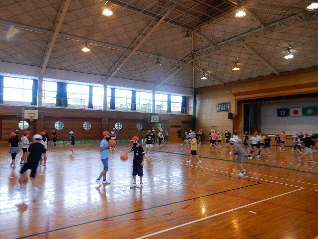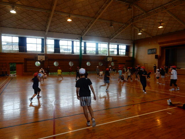 体育館半分を使って活動、コートいっぱいに走り回っていました。