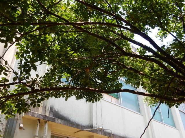 タイトルのとおり、先日、ハチの巣を駆除しました。一番上の写真は、校長室近くのふだんは、あまり子どもが通らない樹木の写真です。