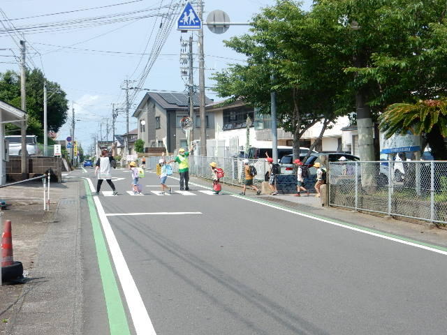 低学年の子どもの下校時間、記念館前付近は、学童(児童クラブ)のお迎えを待つたくさんの子ども達で毎日あふれています。したがって、お迎えが来ると学校前の道路も混雑し、通行車両も少なくないので、登下校担当の先生は安全の見守り活動に、毎日欠かさず取り組んでいます。また、この担当の先生は下校時間だけでなく、正門前で毎朝、登校してくる子ども達の安全指導にも取り組まれています。暑い日も寒い日も雨の日も風の日も、毎日欠かさず、本当にいつもご苦労様です。