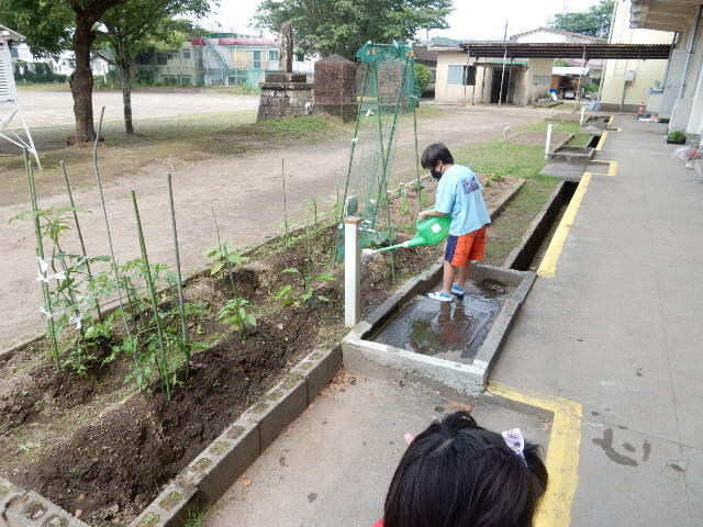 今日も暑い日です。たんぽぽ学級の外には、ピーマンやナス、トマトなどが植えてあります。根元の辺りにていねいにお水をあげている子どもの優しい気持ちにふれました。