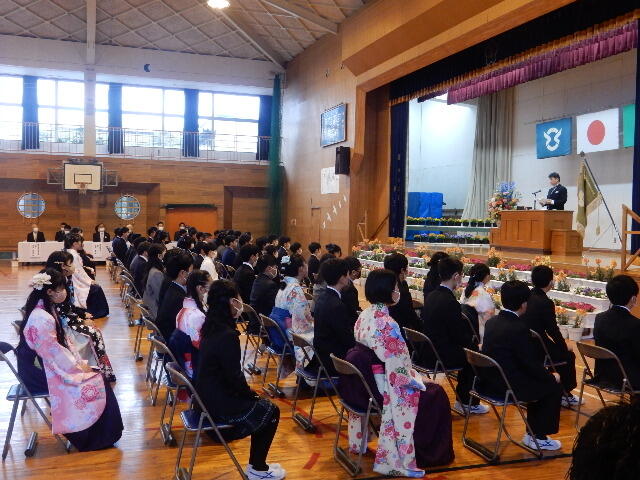 昨日から続く春の雨が小降りとなった本日午前、本年度の卒業式が執り行われました。