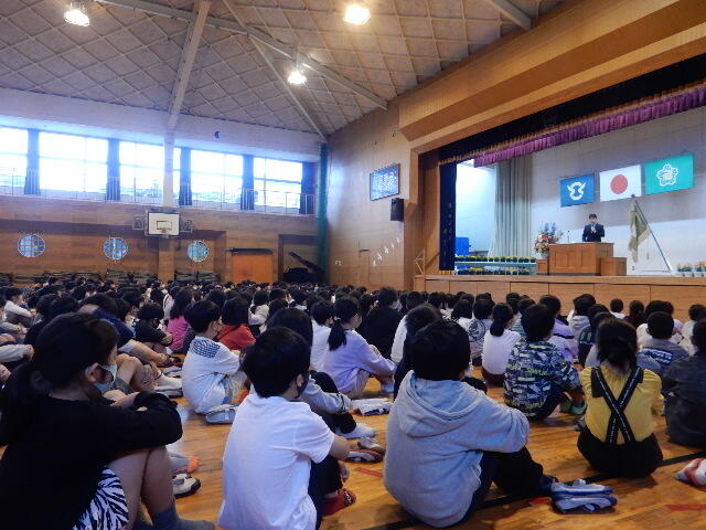 修了式が終わり、生徒指導担当の先生から、春休みの生活についてのお話がありました。「たった一つの命を大切にする」「いいことはすすんでやり、わるいことはしない」という約束などについて、全校児童とともに一つずつ丁寧に確認をしました。
