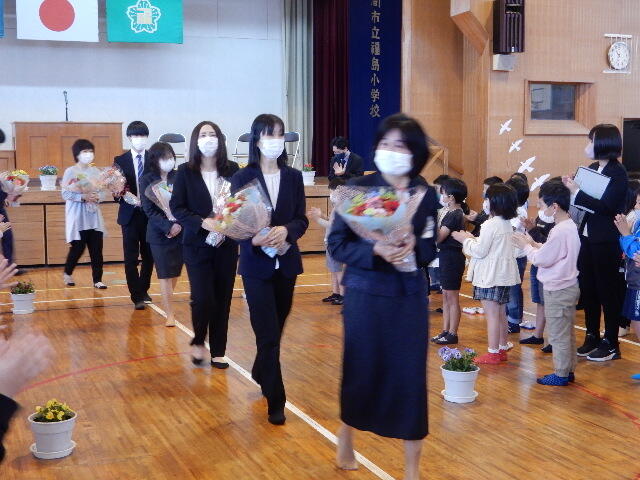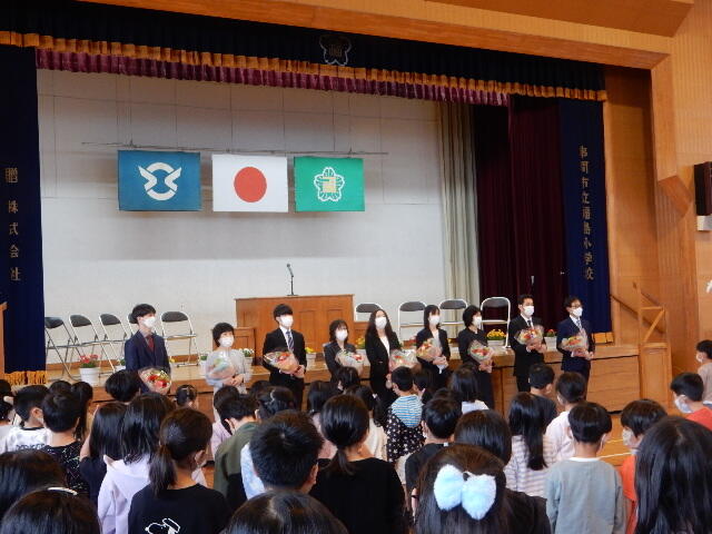 この度の異動で、11名の先生方が福島小を去られることとなり、その内、9名の先生方と子ども達とのお別れの式を行いました。
