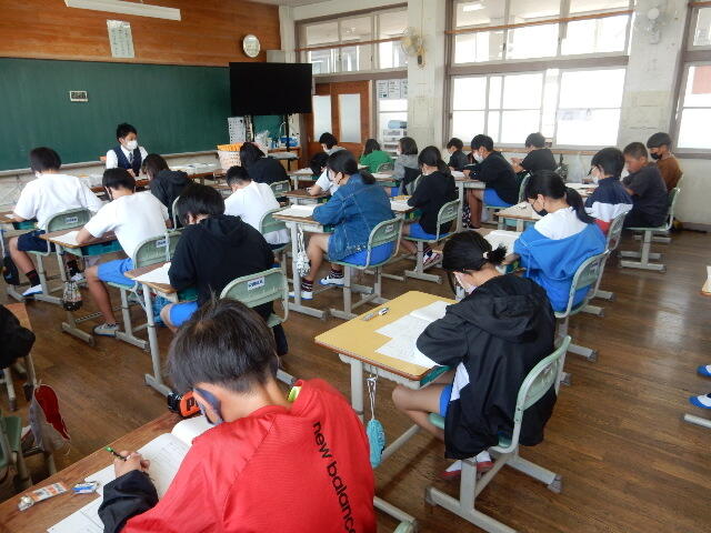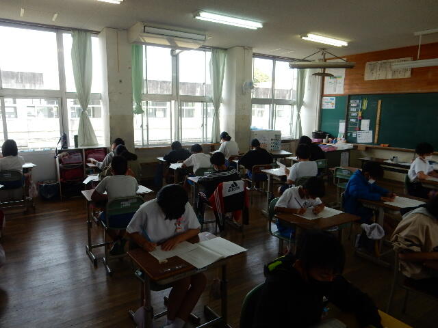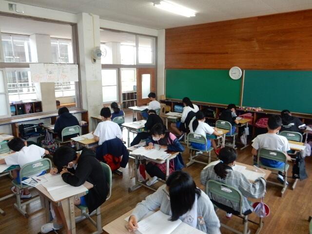 画像は、1校時の国語の様子です。子ども達が集中して問題に取り組んでいる姿が見られました。すばらしい頑張りでした。
