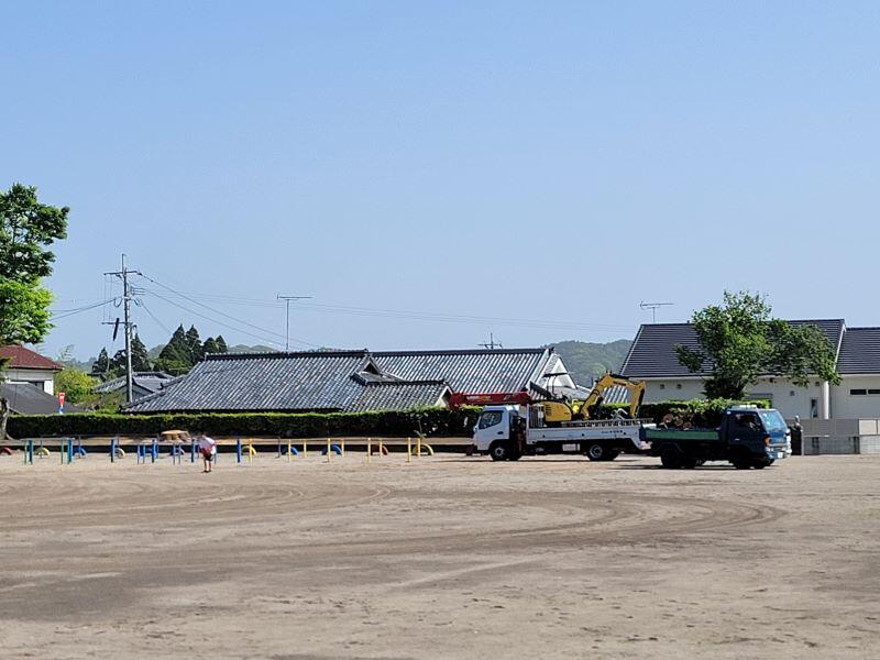 先日、運動場南側のケヤキの木が伐採されました。