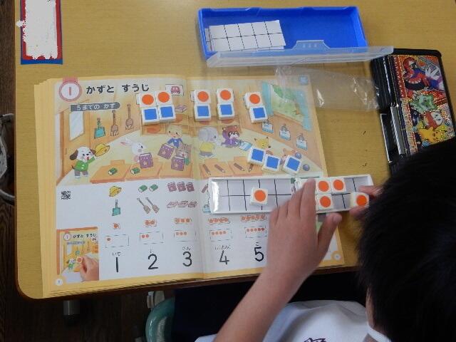 1年生の算数は、1から5までの数の学習に入りました。