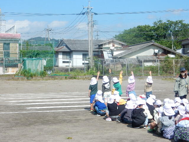 串間警察署と交通安全協会の方をお呼びして、交通安全教室を行いました。(画像は、1・2年生の様子です。)