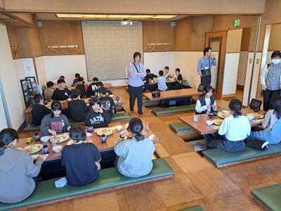 ホテル到着後、部屋へ入って準備をした子ども達は、たった今、夕食に入りました。